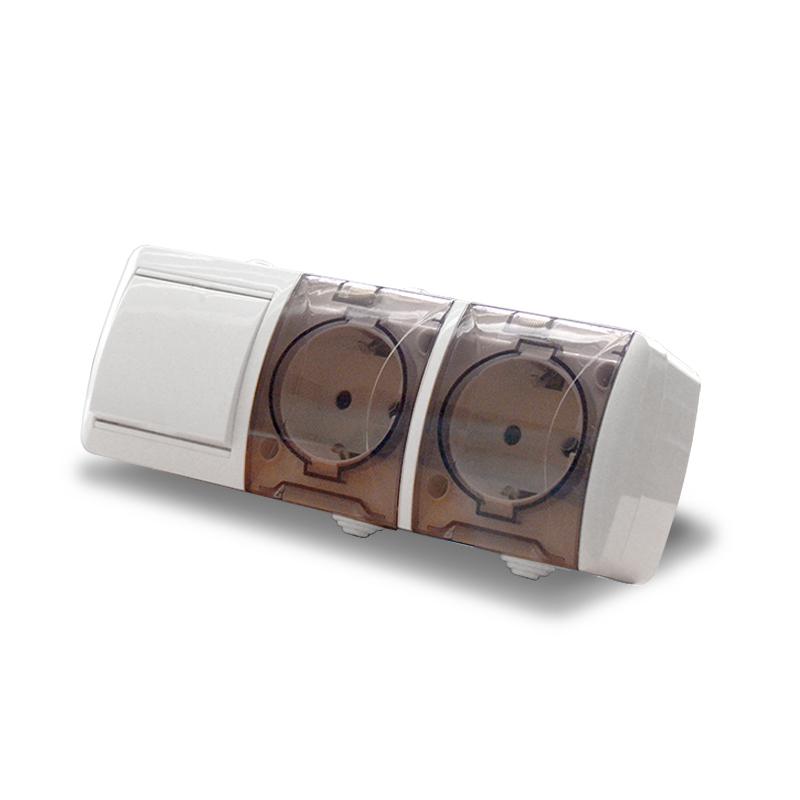Блок ОП Клио 1-кл. выкл. 10А + розетка 2-м 16А 250В с заземл. с прозр. крышкой бел. Universal К2238