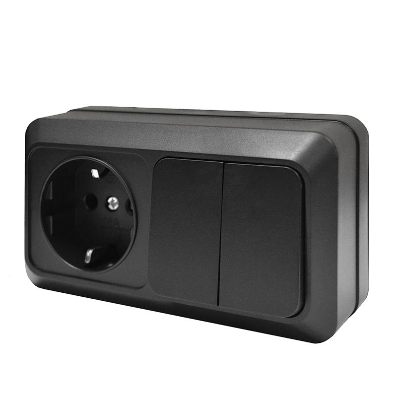 Блок ОП Олимп 2-кл. выкл. 10А + роз. с заземл. 16А 220В горизонт. черн. Universal 7946810