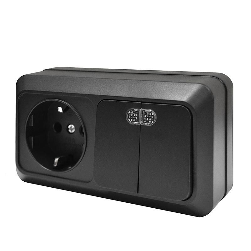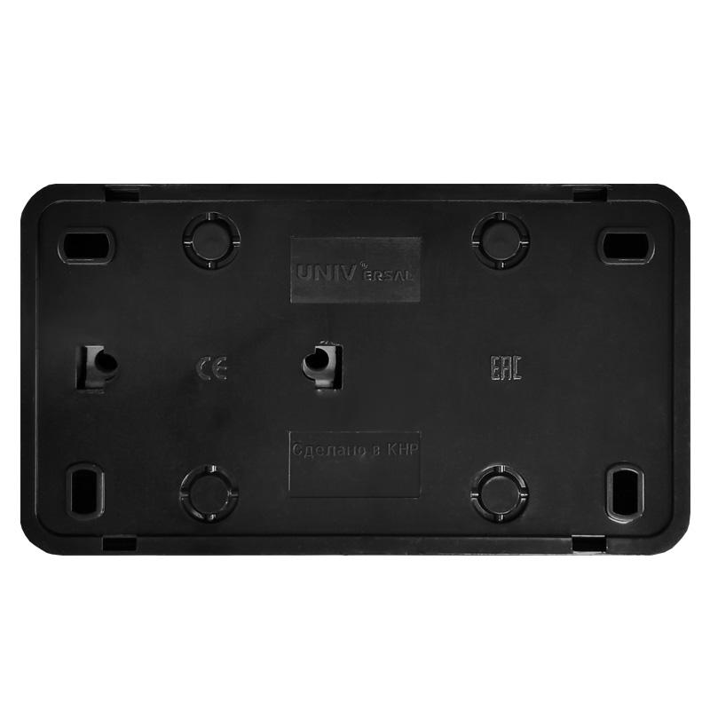Блок ОП Олимп 2-кл. выкл. с подсветкой 10А + роз. с заземл. 16А 220В горизонт. черн. Universal 7946812