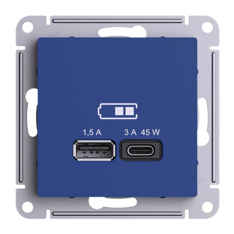 Розетка USB AtlasDesign тип A+C 45Вт высокоскор. ЗУ QC PD механизм аквамарин SE ATN001129
