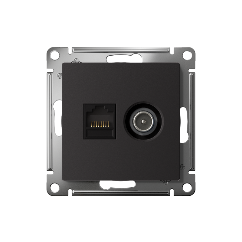 Механизм розетки 2-м ATLAS DESIGN комп. RJ45 кат.5E+TV карбон SchE ATN001089