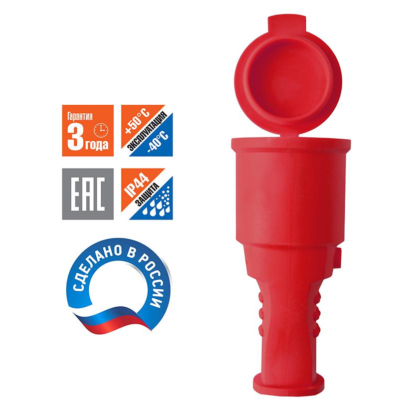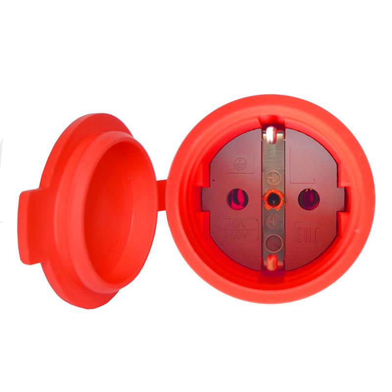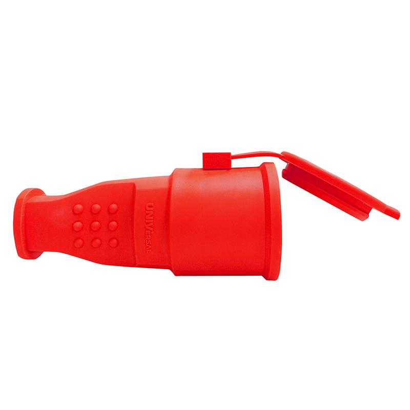Разъем штепсельный 16А IP44 250В (еврослот) с заземл. каучук красн. Universal 3078
