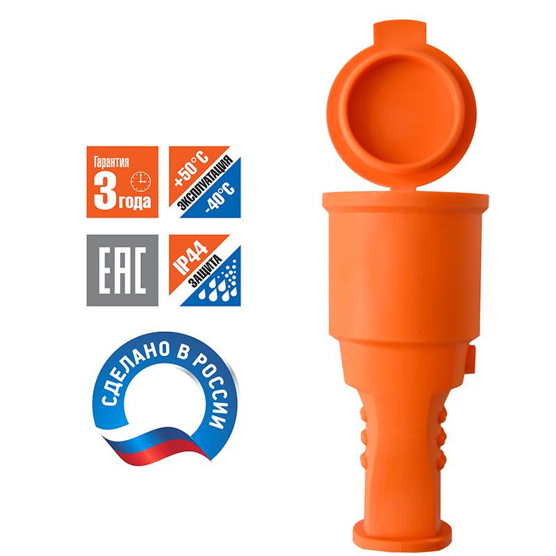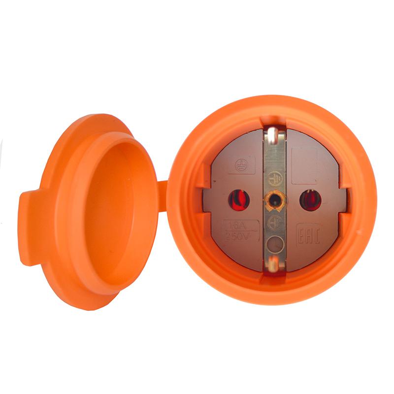 Разъем штепсельный 16А IP44 250В (еврослот) с заземл. каучук оранж. Universal 3038