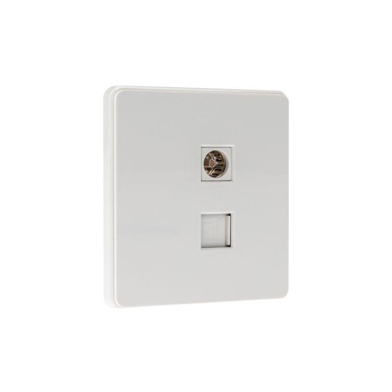 Розетка компьютерная + телевизионная СП ROUND MIELE RJ45 кат6 + TV перламутр Kranz KR-78-0722-1