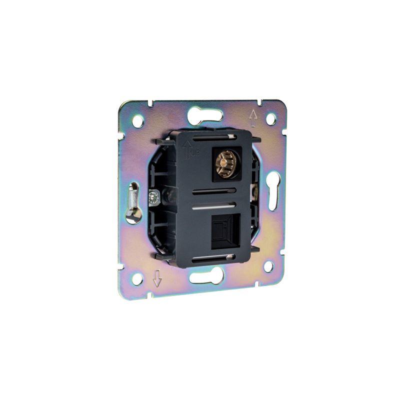 Розетка компьютерная + телевизионная СП STRONG MIELE RJ45 кат6 + TV антрацит Kranz KR-78-0722-5
