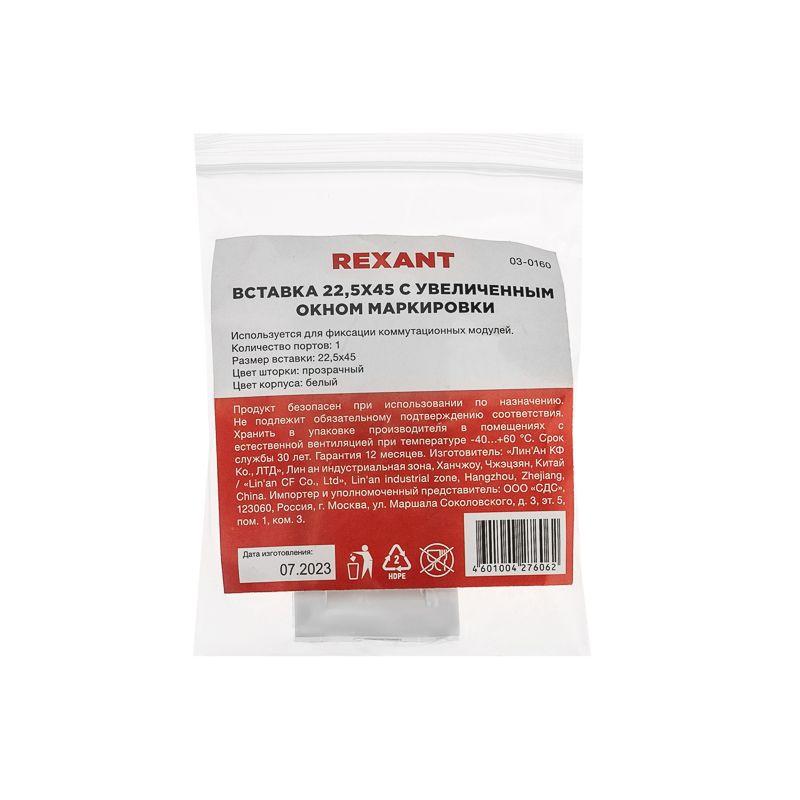 Вставка 22.5х45 на 1 мод. Mosaic с прозр. шторкой и увеличенным окном маркировки бел. Rexant 03-0160
