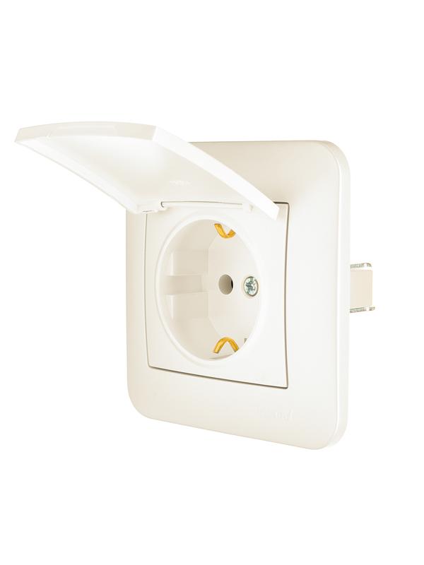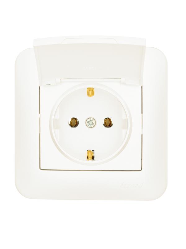 Розетка 1-м СП ASTI 16А IP20 с заземл. с крышкой термопласт в сборе жемчуж./бел. перламутр. LEZARD 7081-3030-123В