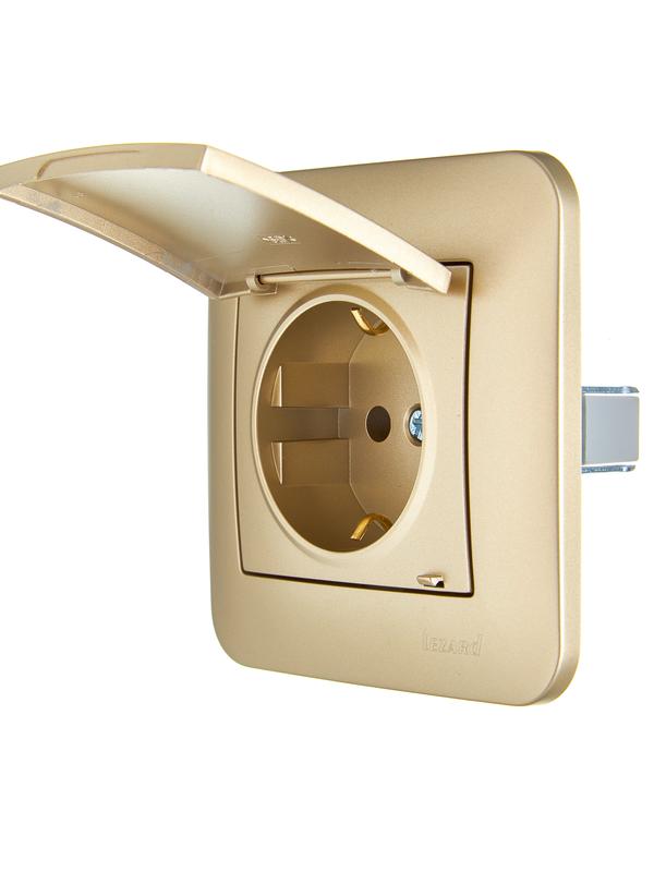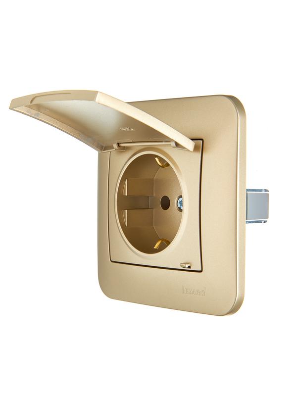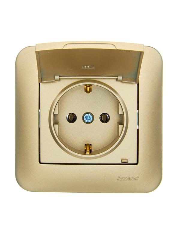 Розетка 1-м СП ASTI 16А IP20 с заземл. с крышкой термопласт в сборе золото. LEZARD 7081-3636-123В