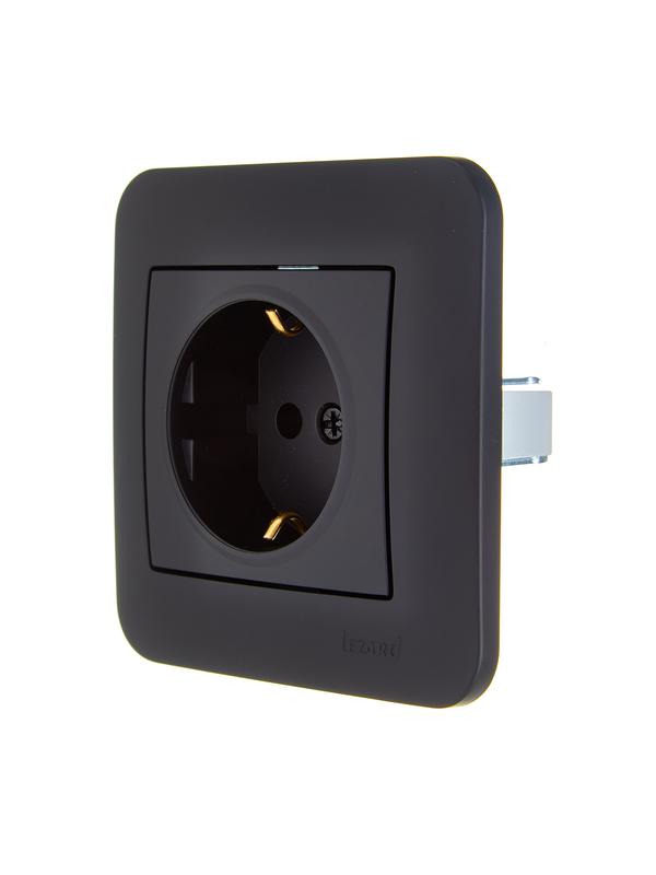 Розетка 1-м СП ASTI 16А IP20 с заземл. термопласт в сборе черн. бархат. LEZARD 7081-4242-122B