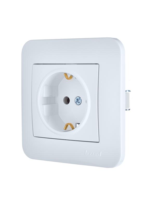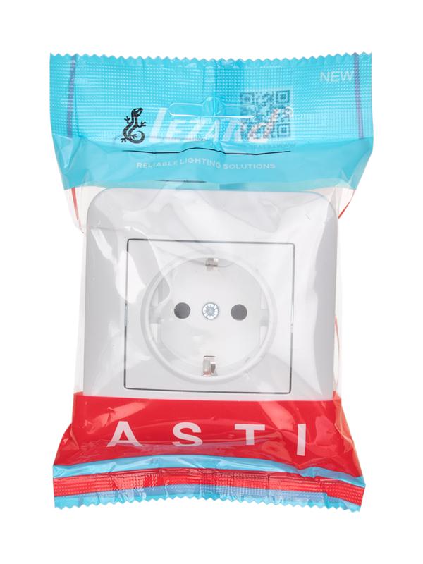 Розетка 1-м СП ASTI 16А IP20 с заземл. защ. шторки термопласт в сборе бел. LEZARD 7081-0202-124B