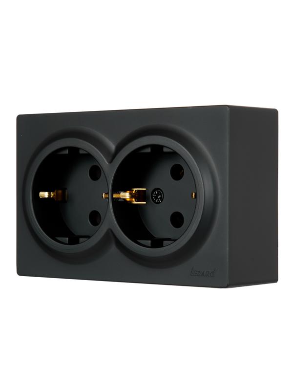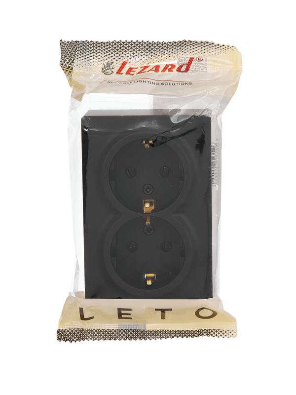 Розетка 2-мест. с заземл. LETO закрытый корпус ПБТ черн. бархат LEZARD 752-4200-127B
