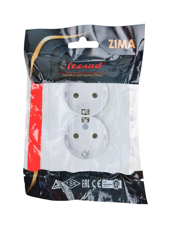 Розетка 2-мест. с/з СП ZIMA IP20 16А ПБТ безвинт. зажим бел. LEZARD 704-0200-127BQC