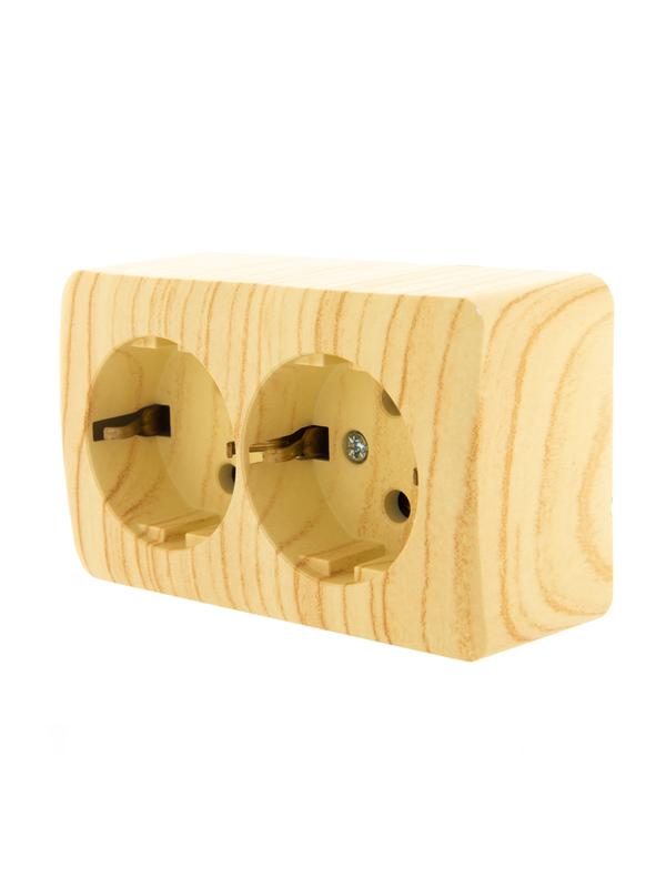 Розетка 2-м ОП Viola с заземл. беленый дуб LEZARD 751-5200-127