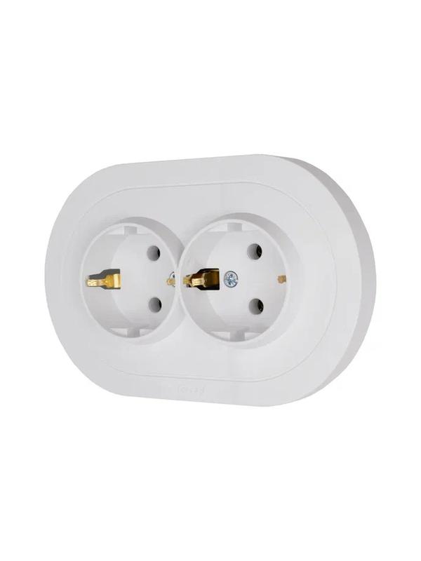 Розетка 2-м СП OSEN с заземл. ПБТ круглая механизм бел. LEZARD 744-0200-127B