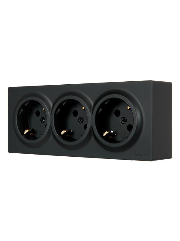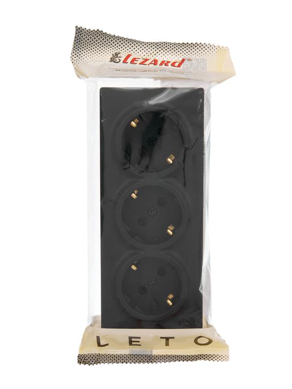 Розетка 3-м ОП LETO с заземл. закрытый корпус ПБТ черн. бархат LEZARD 752-4200-127BUP