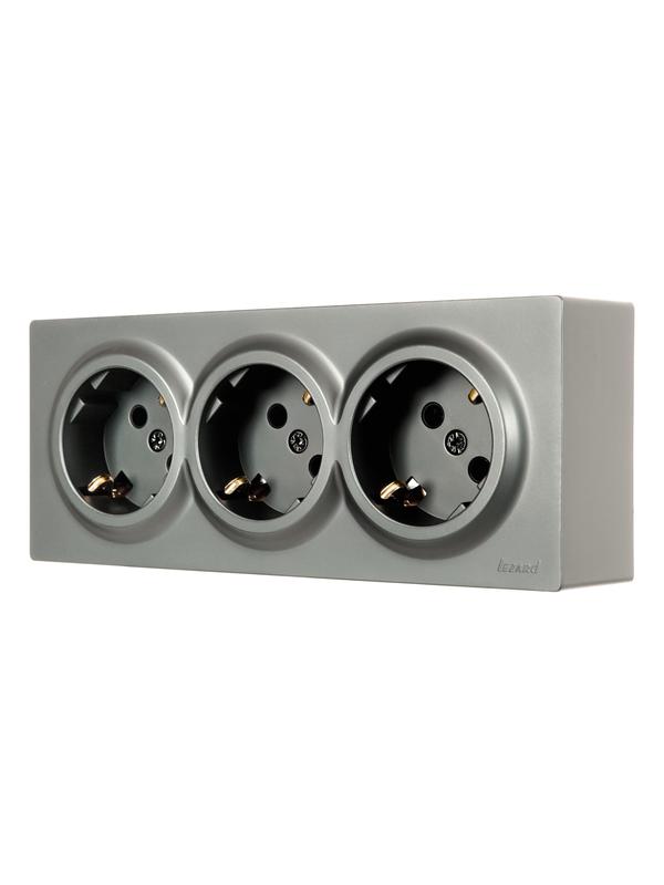 Розетка 3-мест. с заземл. LETO закрытый корпус ПБТ платина LEZARD 752-3500-127BUP