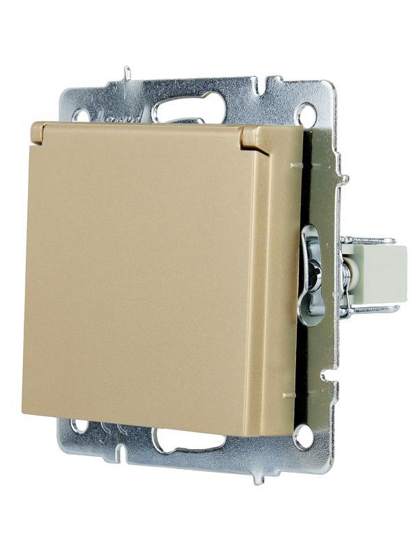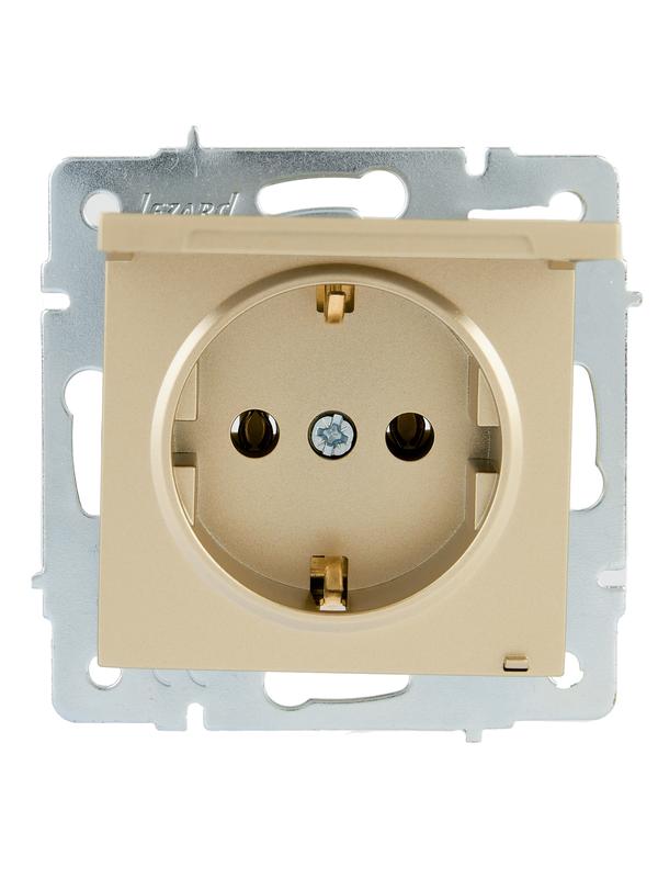 Розетка с заземл. VESNA с крышкой ПБТ зол. LEZARD 742-3688-123B