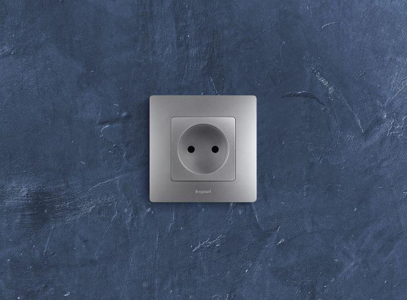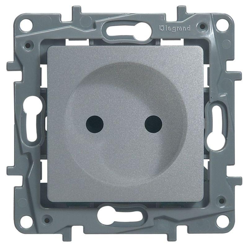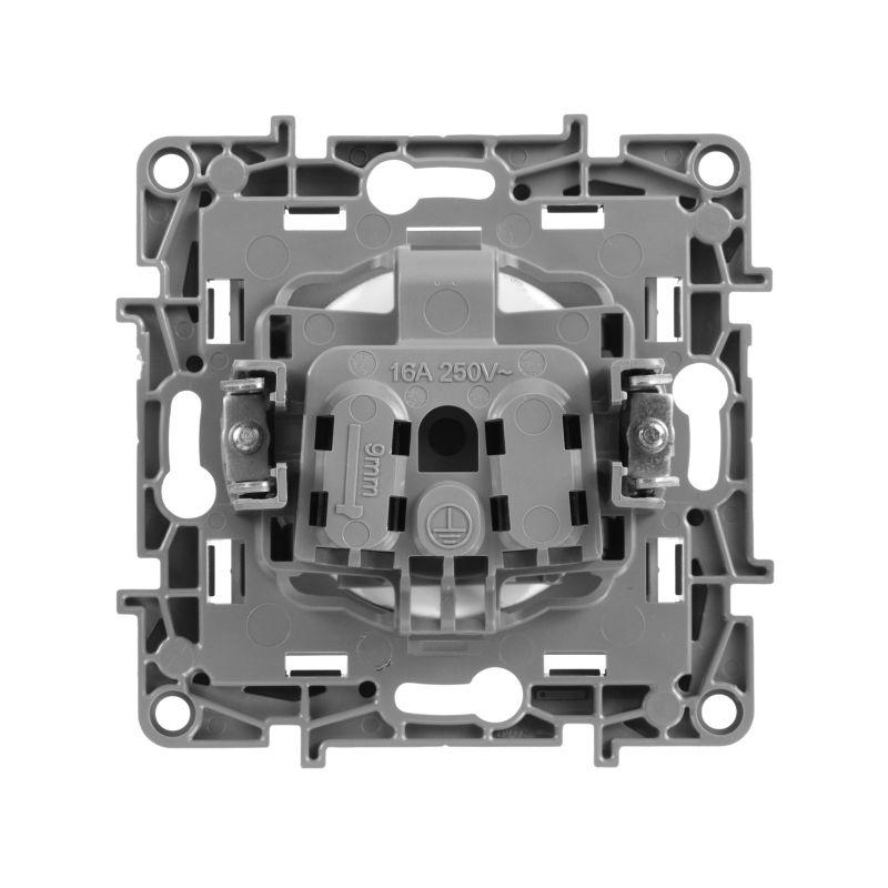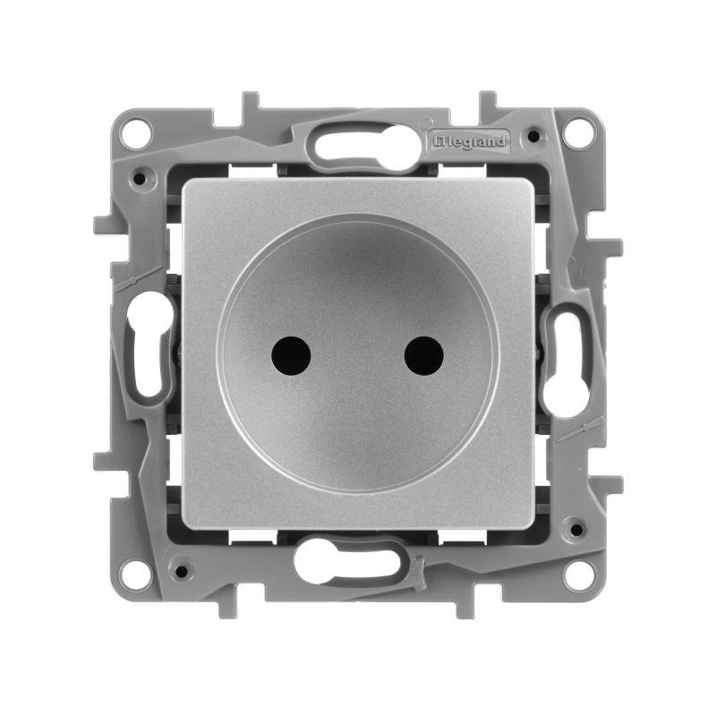 Розетка 1-м СП Etika 16А IP31 250В 2P без заземл. защ. шторки немецк. стандарт винтов. клеммы механизм алюм. Leg 672434
