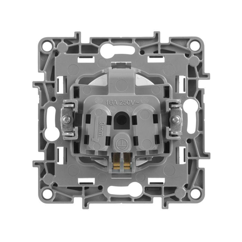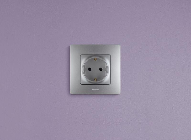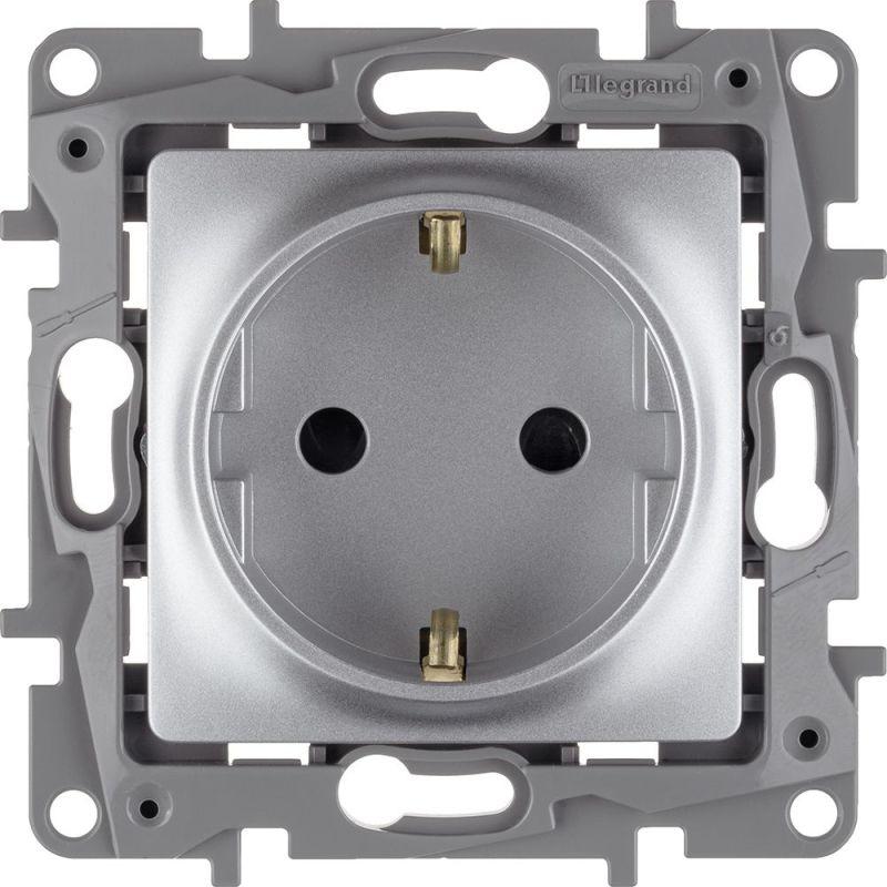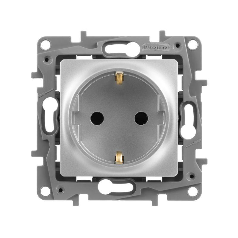 Розетка 1-м СП Etika 16А IP31 250В 2P+E с заземл. защ. шторки немецк. стандарт винтов. клеммы механизм алюм. Leg 672422