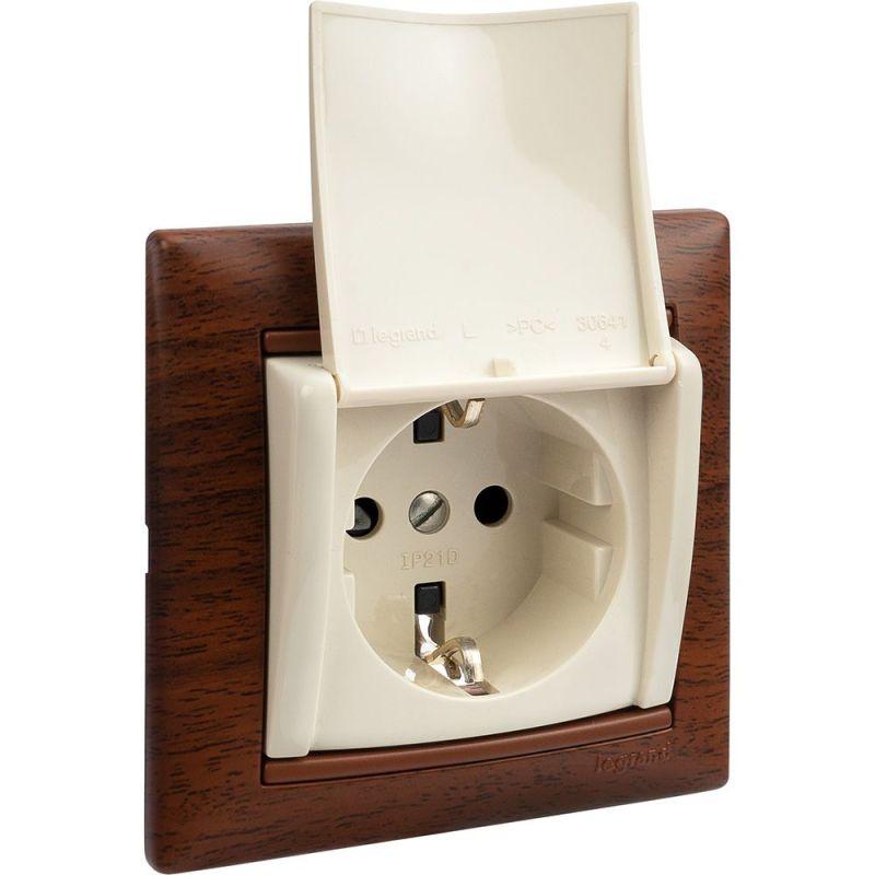 Розетка 1-м СП Valena 16А IP21 2P+E с заземл. защ. шторки с крышкой винты механизм сл. кость Leg 774322