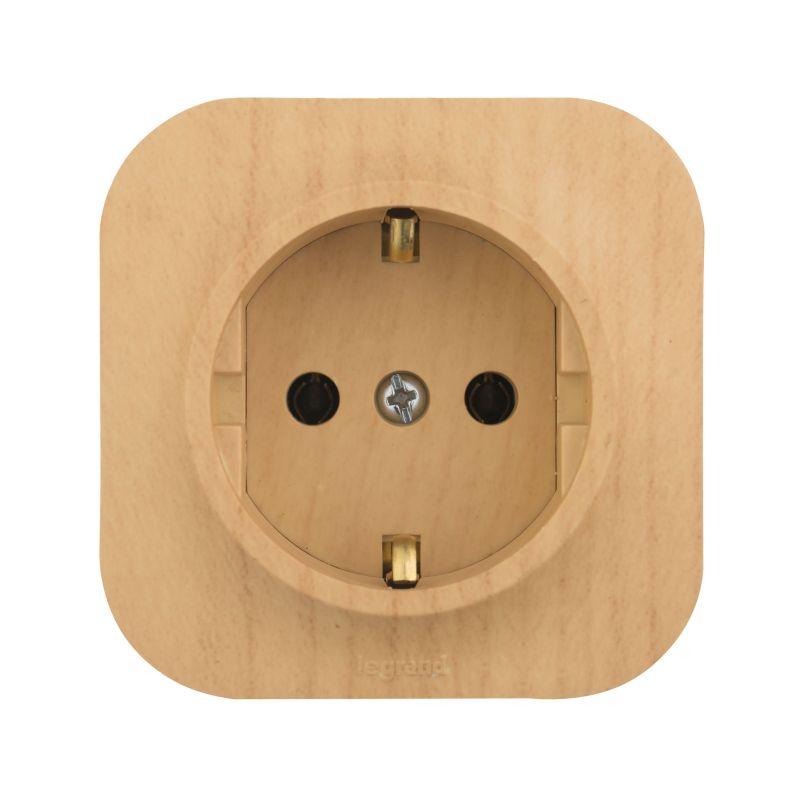 Розетка 1-м ОП Quteo 16А IP20 2P+E с заземл. без защ. шторок дерево Leg 782271
