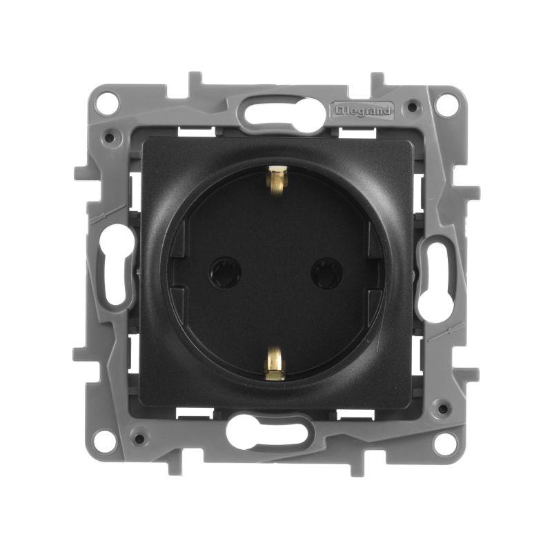 Розетка 1-м СП Etika 16А IP20 250В 2P+E с заземл. немецк. стандарт винтов. клеммы механизм антрацит Leg 672621