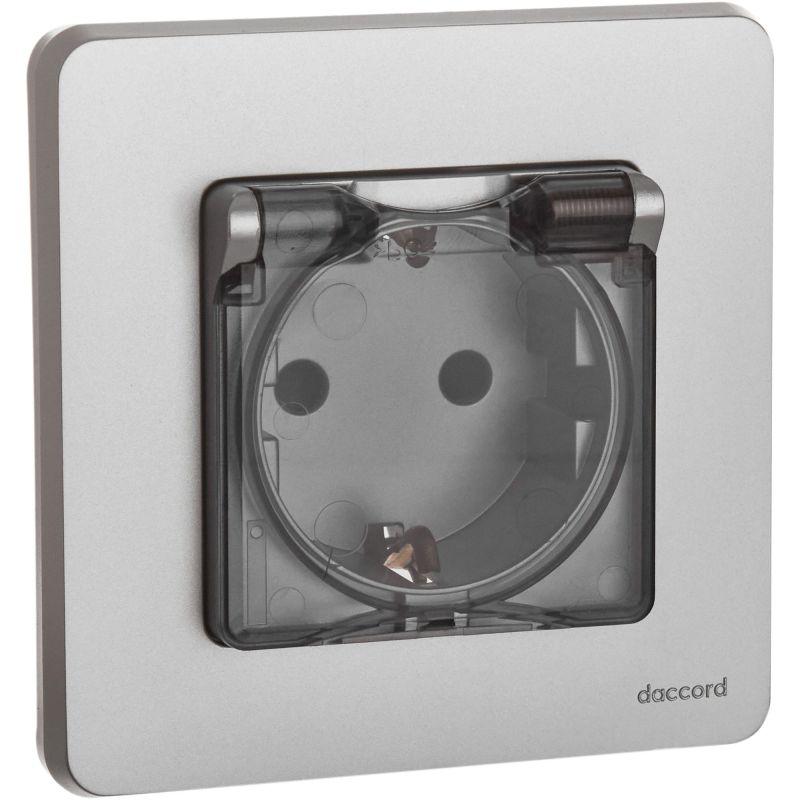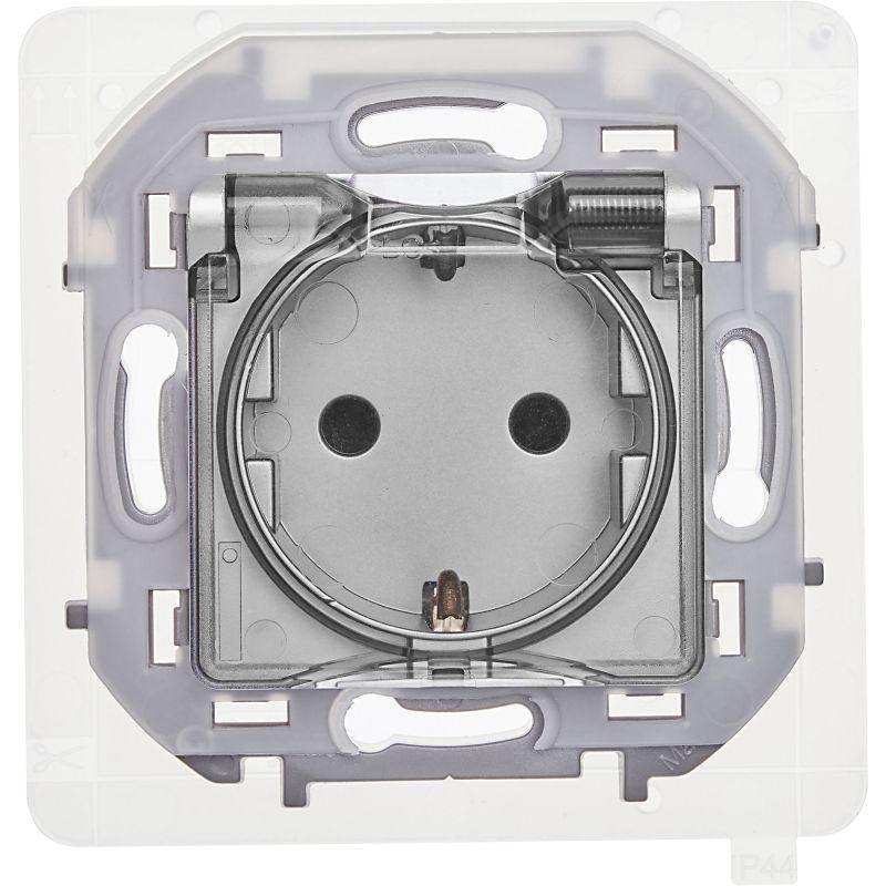 Розетка 1-м СП Inspiria 16А IP44 250В 2P+E защ. шторки с крышкой немецк. стандарт механизм алюм. Leg 673742