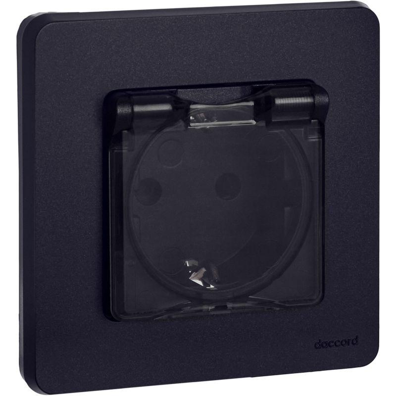 Розетка 1-м СП Inspiria 16А IP44 250В 2P+E защ. шторки с крышкой немецк. стандарт механизм антрацит Leg 673743
