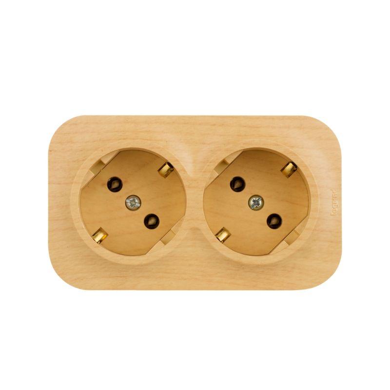 Розетка 2-м ОП Quteo 16А IP20 250В 2х2P+E с заземл. без защ. шторок дерево Leg 782293