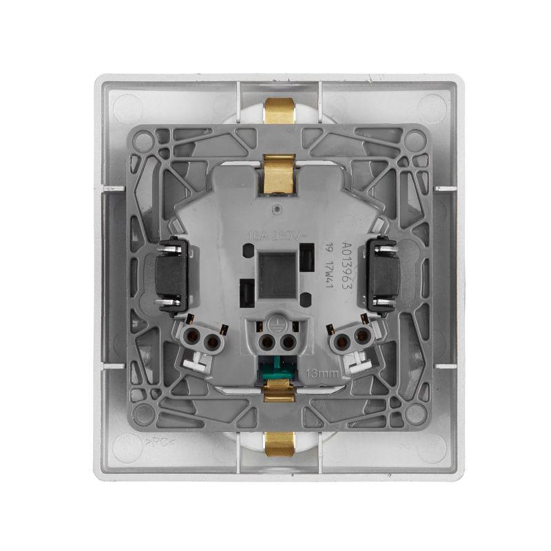 Розетка 2-м СП Etika 2К+З 16А защ. шторки с заземл. безвинт. зажимы в сборе алюм. Leg 672433