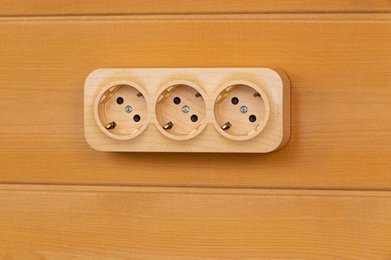 Розетка 3-м ОП Quteo 16А IP20 250В 3х2P+E с заземл. защ. шторки дерево Leg 782288