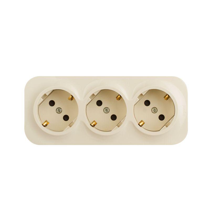 Розетка 3-м ОП Quteo 16А IP20 250В 3х2P+E с заземл. защ. шторки сл. кость Leg 782268