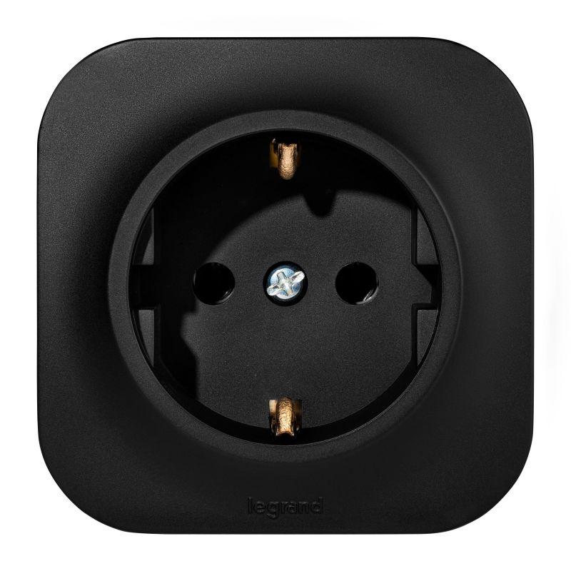 Розетка 1-м ОП Quteo 16А IP20 2P+E с заземл. без защ. шторок черн. матов. Leg 782472