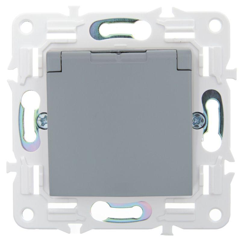 Розетка 1-м SKANDY 16А IP44 с заземл. защ. шторки с крышкой SK-R11Gr сер. IEK SK-R16-16-44-K03