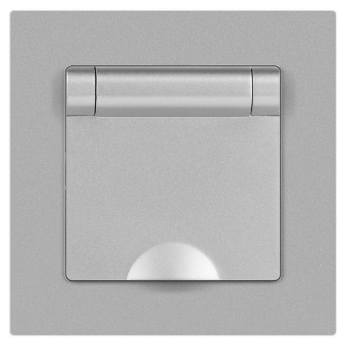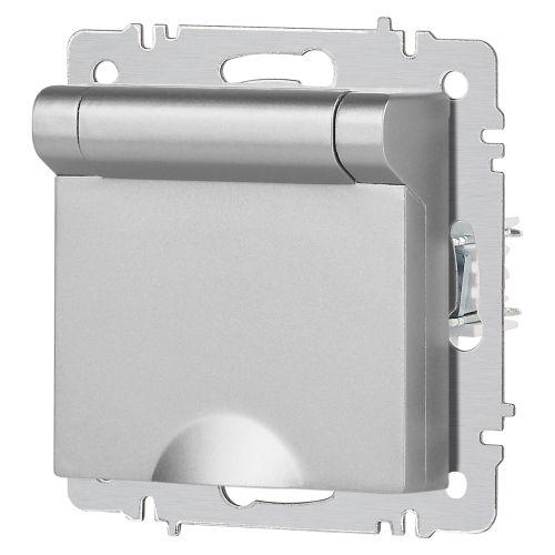 Розетка 1-м СП Accent 6-203-03 16А IP20 250В 2P+E Schuko с крышкой алюм. Intro Б0063721