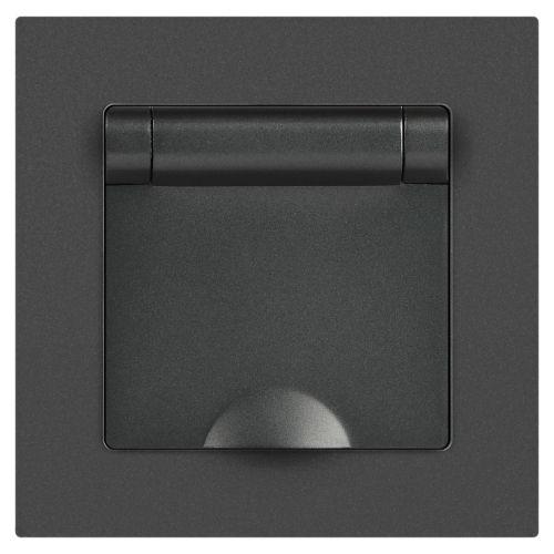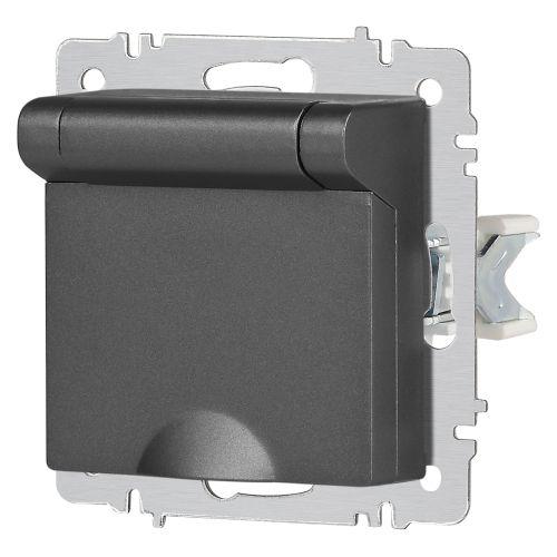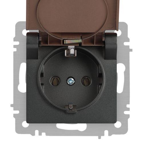 Розетка 1-м СП Accent 6-203-07 16А IP20 250В 2P+E Schuko с крышкой AL/CU графит Intro Б0063441