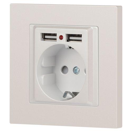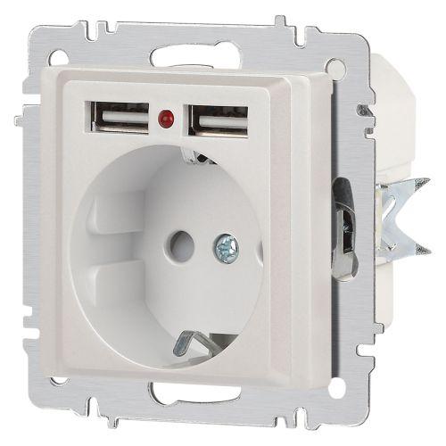 Розетка 1-м СП Accent 6-410-06 16А IP20 250В P+E Schuko + 2хUSB защ. шторки перламутр. Intro Б0063700