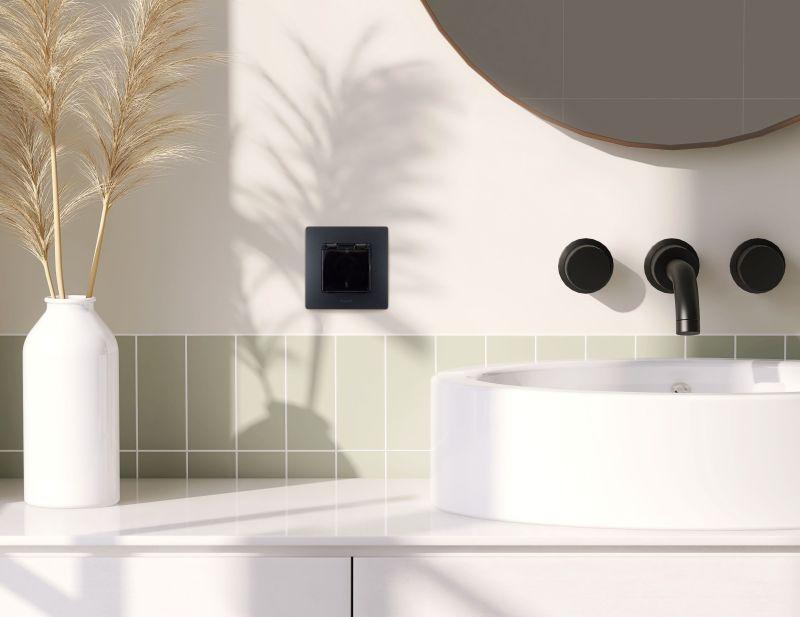 Розетка 1-м СП Etika 16А IP44 250В с заземл. со шторками с защ. крышкой безвинтов. зажимы антрацит IEK 672626