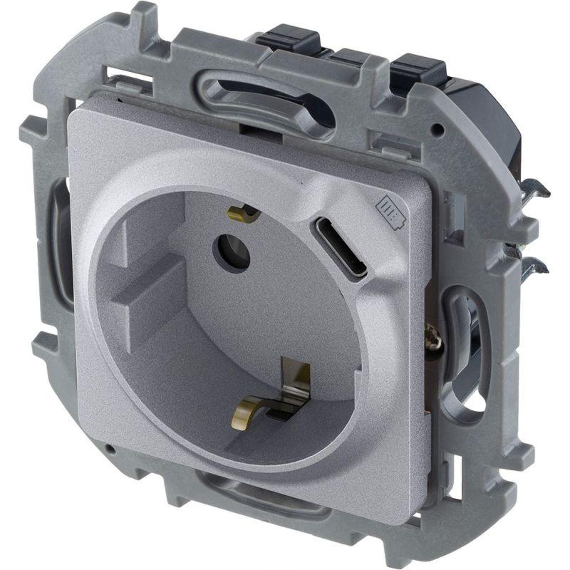 Розетка 1-м СП Inspiria 16А IP20 250В 2P+E немецк. стандарт с заряд. устройством USB тип C 1.5А 5В механизм алюм. Leg 673772