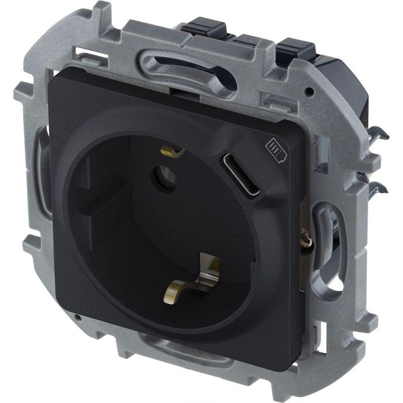 Розетка 1-м СП Inspiria 16А IP20 250В 2P+E немецк. стандарт с заряд. устройством USB тип C 1.5А 5В механизм антрацит Leg 673773