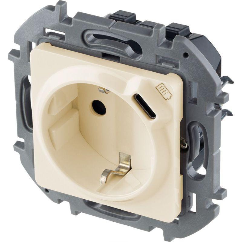 Розетка 1-м СП Inspiria 16А IP20 250В 2P+E немецк. стандарт с заряд. устройством USB тип C 1.5А 5В механизм сл. кость Leg 673771