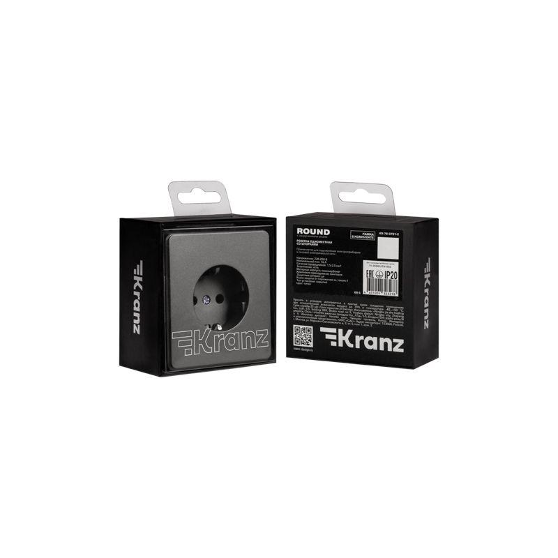 Розетка 1-м СП ROUND MIELE 16А с заземл. защ. шторки титан Kranz KR-78-0701-2