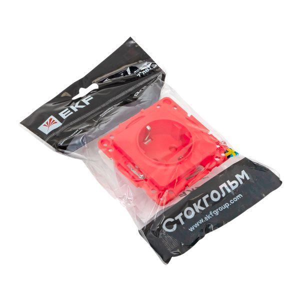 Розетка 1-м СП Стокгольм 16А с заземл. защ. шторки винтов. клеммы механизм красн. EKF EYR16-028-30