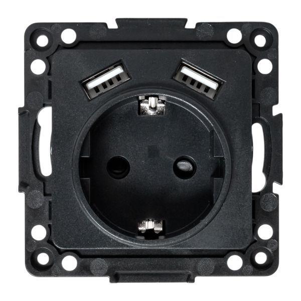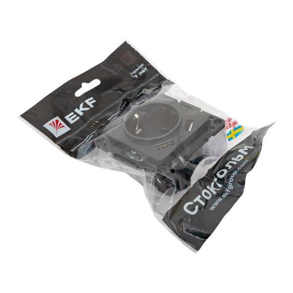 Розетка 1-м СП Стокгольм 16А USB 2A с заземл. защ. шторки винтов. клеммы механизм черн. EKF EZR16-2USB-typeA