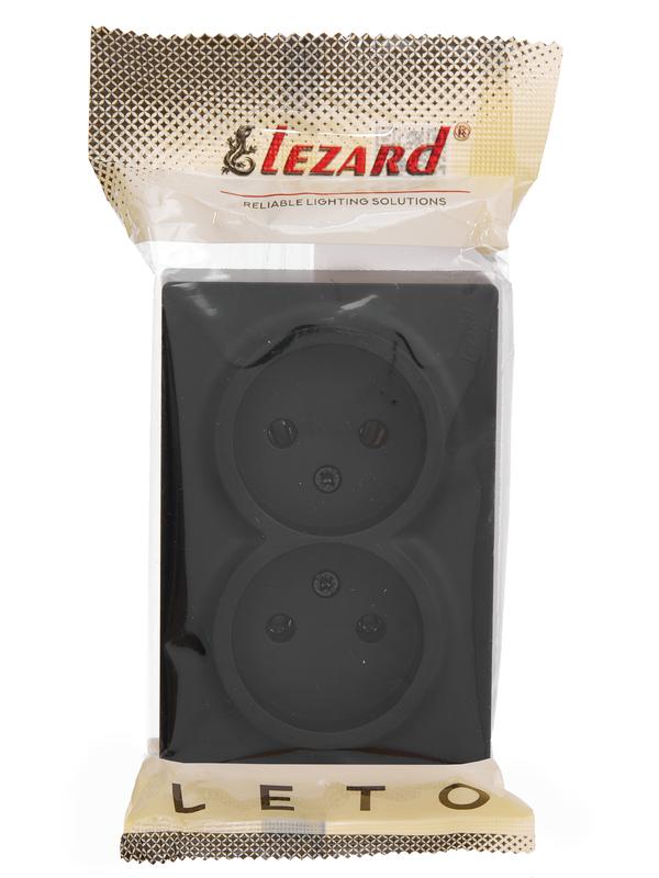 Розетка 2-мест. без заземл. LETO закрытый корпус ПБТ черн. бархат LEZARD 752-4200-128B