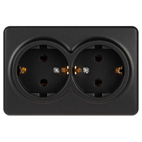 Розетка 2-м ОП Эксперт 11-2205-05 16А IP20 250В 2х2P+E Schuko с заземл. антрацит Эра Б0063047