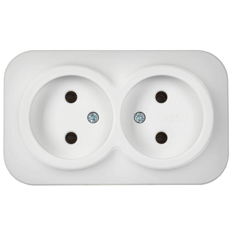 Розетка 2-м ОП GLORY РС22-2-ХБм 10А без заземл. без защ. шторок бел. матов. IEK ERH20-K01M-10