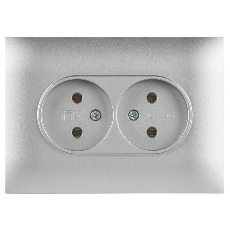 Розетка 2-м SKANDY 10А без заземл. без защ. шторок в сборе SK-R10S серебр. IEK SK-R20-10-K23-F