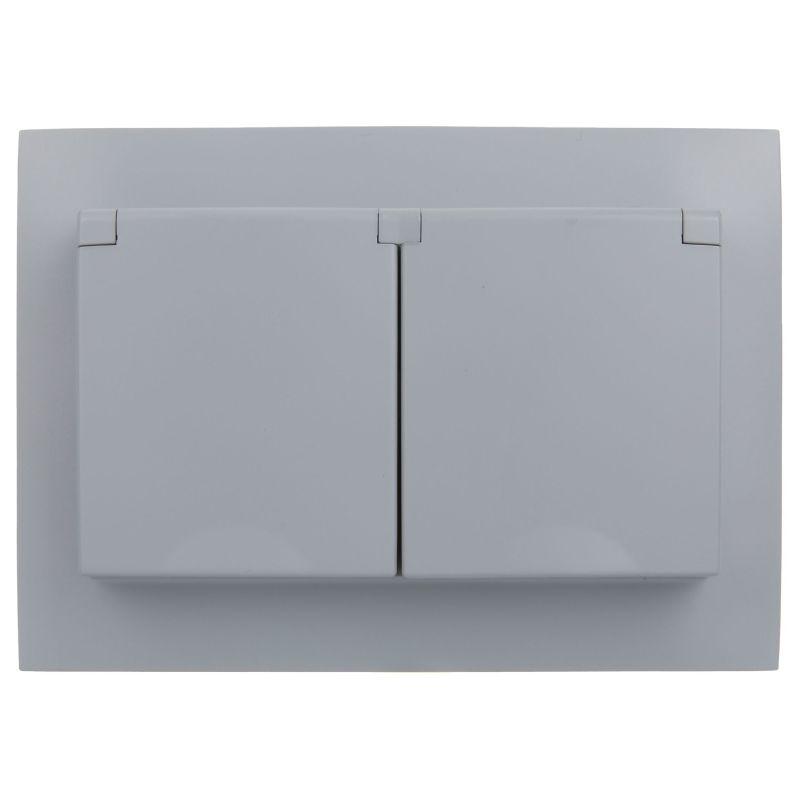 Розетка 2-м SKANDY 16А IP44 с крышкой в сборе SK-R12Gr сер. IEK SK-R26-16-44-K03-F