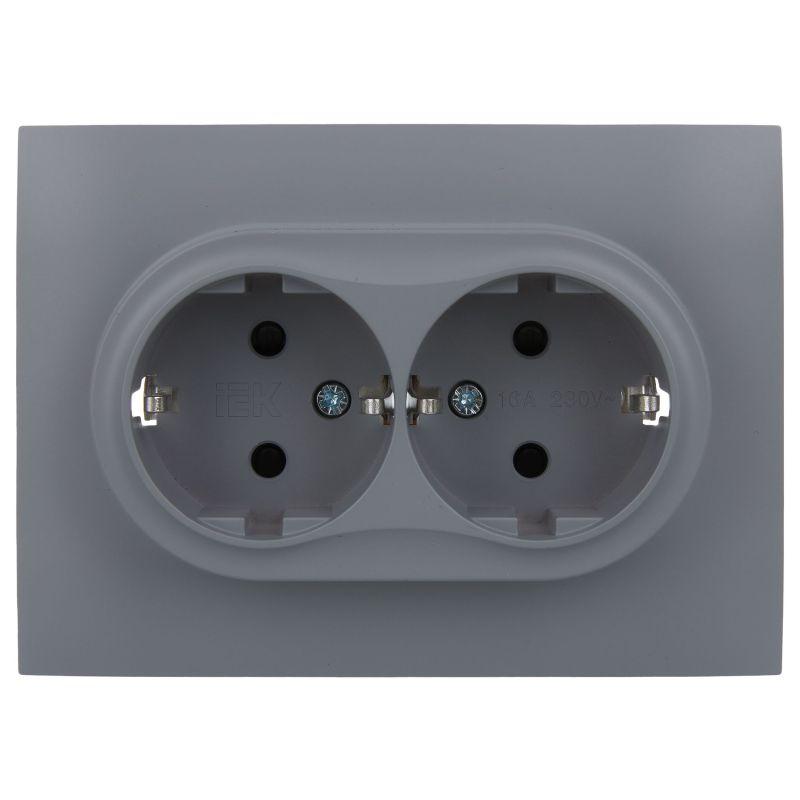 Розетка 2-м SKANDY 16А с заземл. защ. шторки в сборе SK-R07Gr сер. IEK SK-R24-16-K03-F
